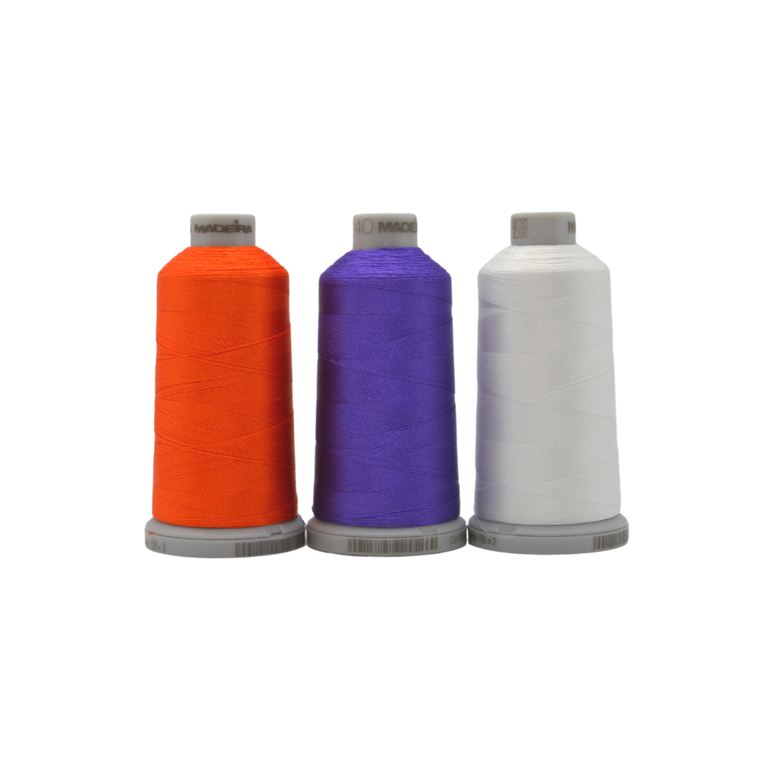 Colors on your monitor or mobile device may vary slightly from the actual thread color, however; thread colors were matched to the College Team official colors.